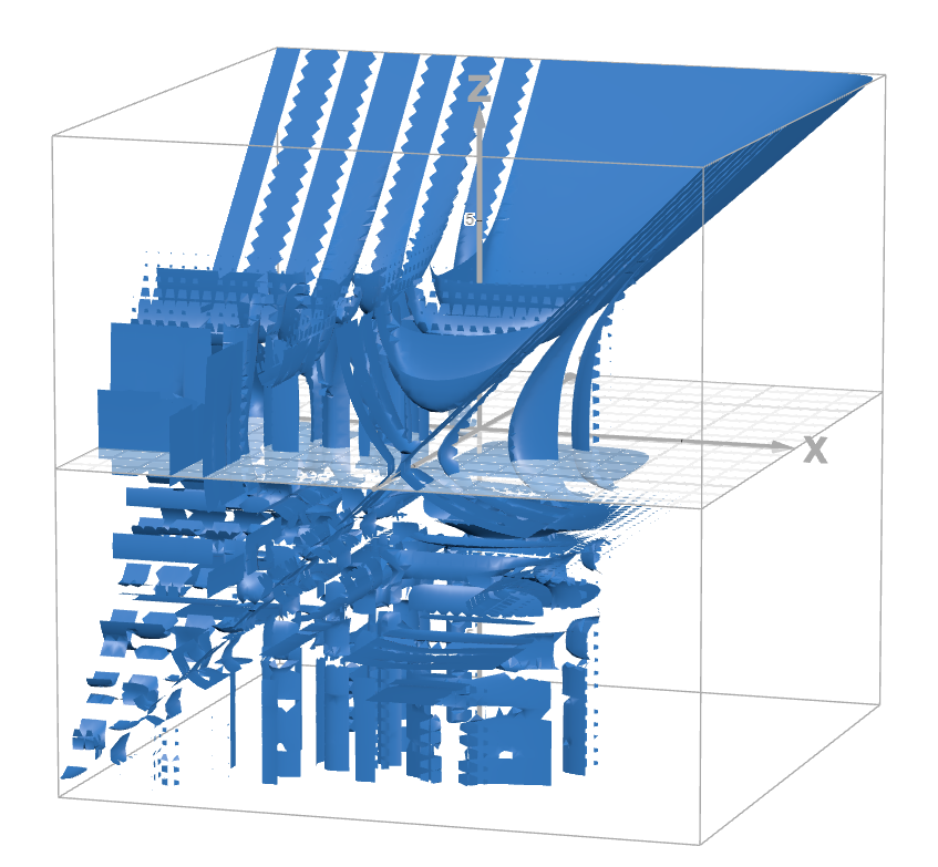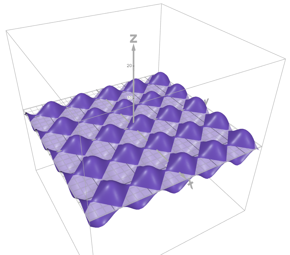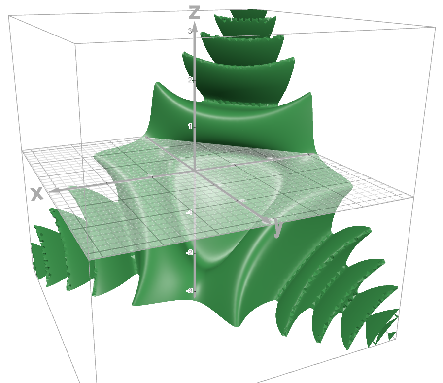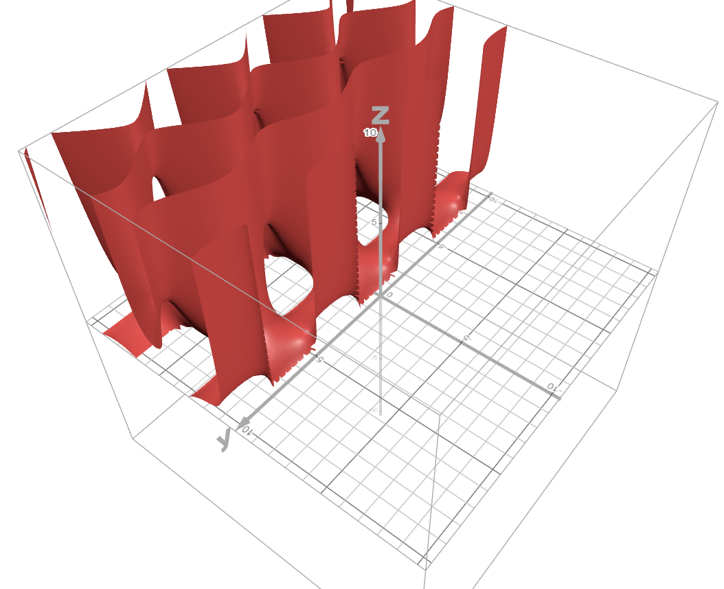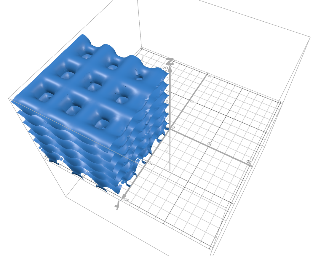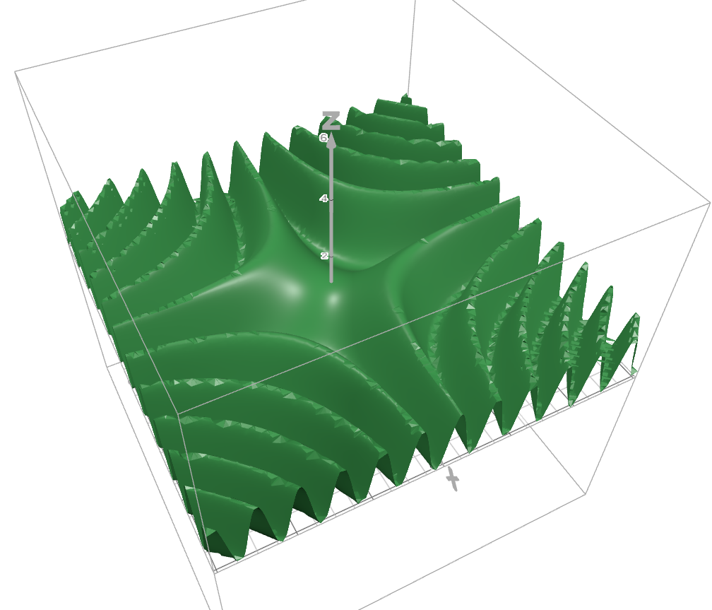 This one is another lucky pick, which gave me a worthy graph. It makes two same patterns, one parallel to z axis and one patallel to x/y axis. And of course, it uses cosine.