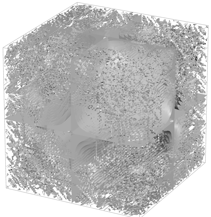 It looks exactly as it sounds: uniting sine and cosine gives you checkerboard-like pattern, but in 3D. Formule is fairly simple: